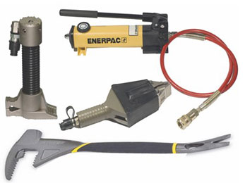 主要用于卷簾門、金屬防盜門的破拆作業(yè)。包括液壓泵、開門器、小型擴(kuò)張器、撬棍等工具。其中開門器最大升限為380mm,最大挺舉力為60kN |